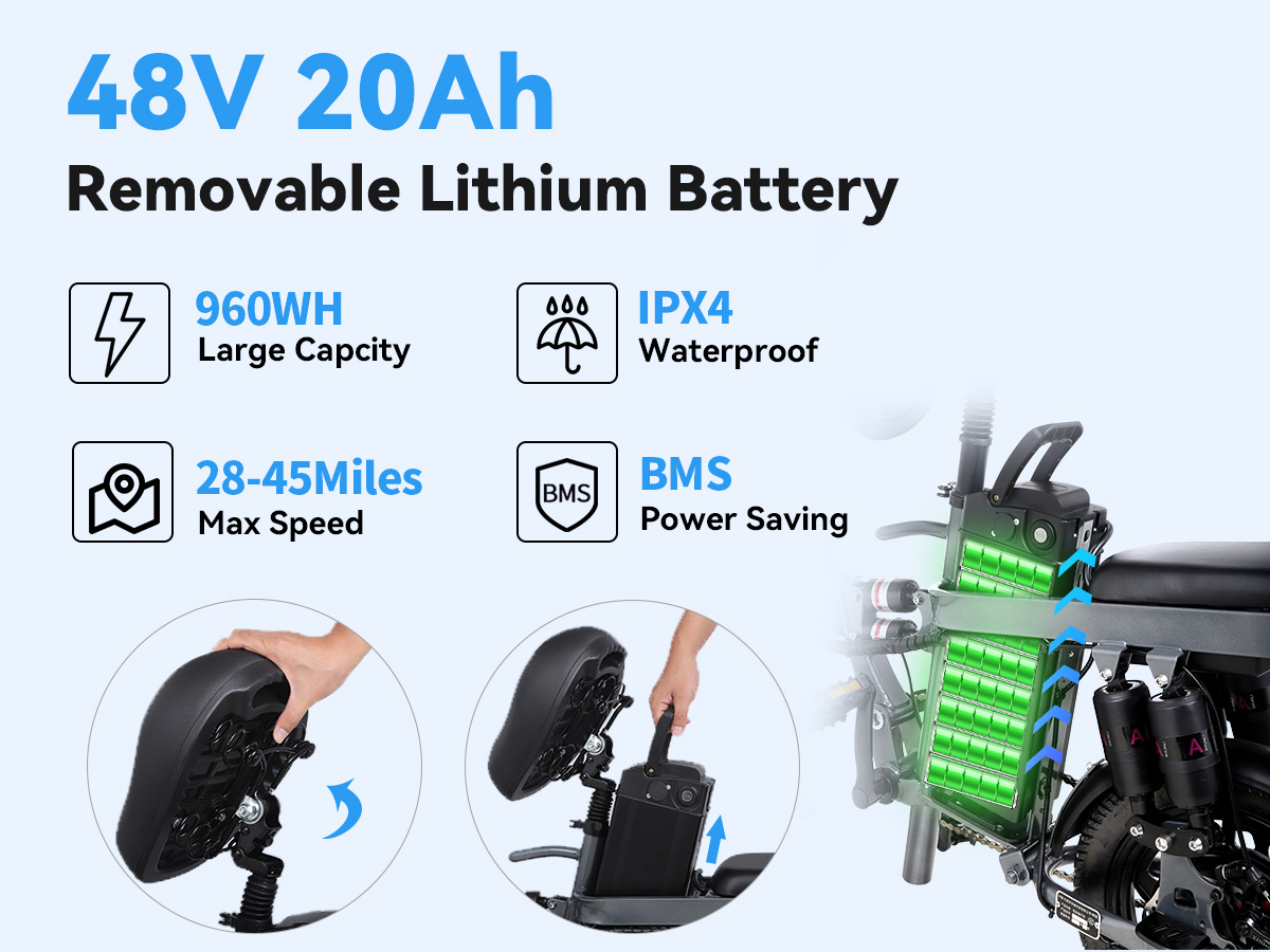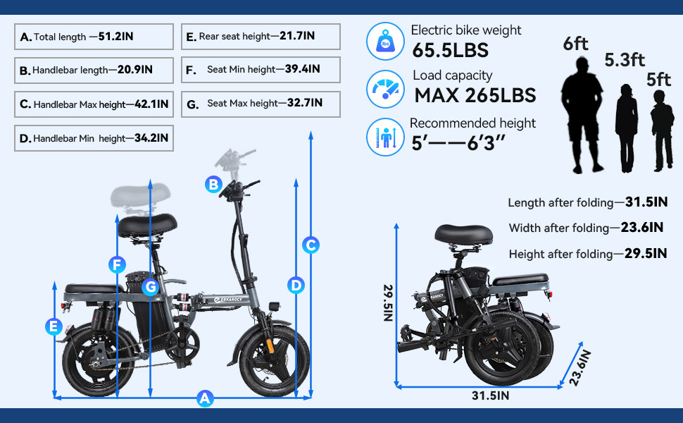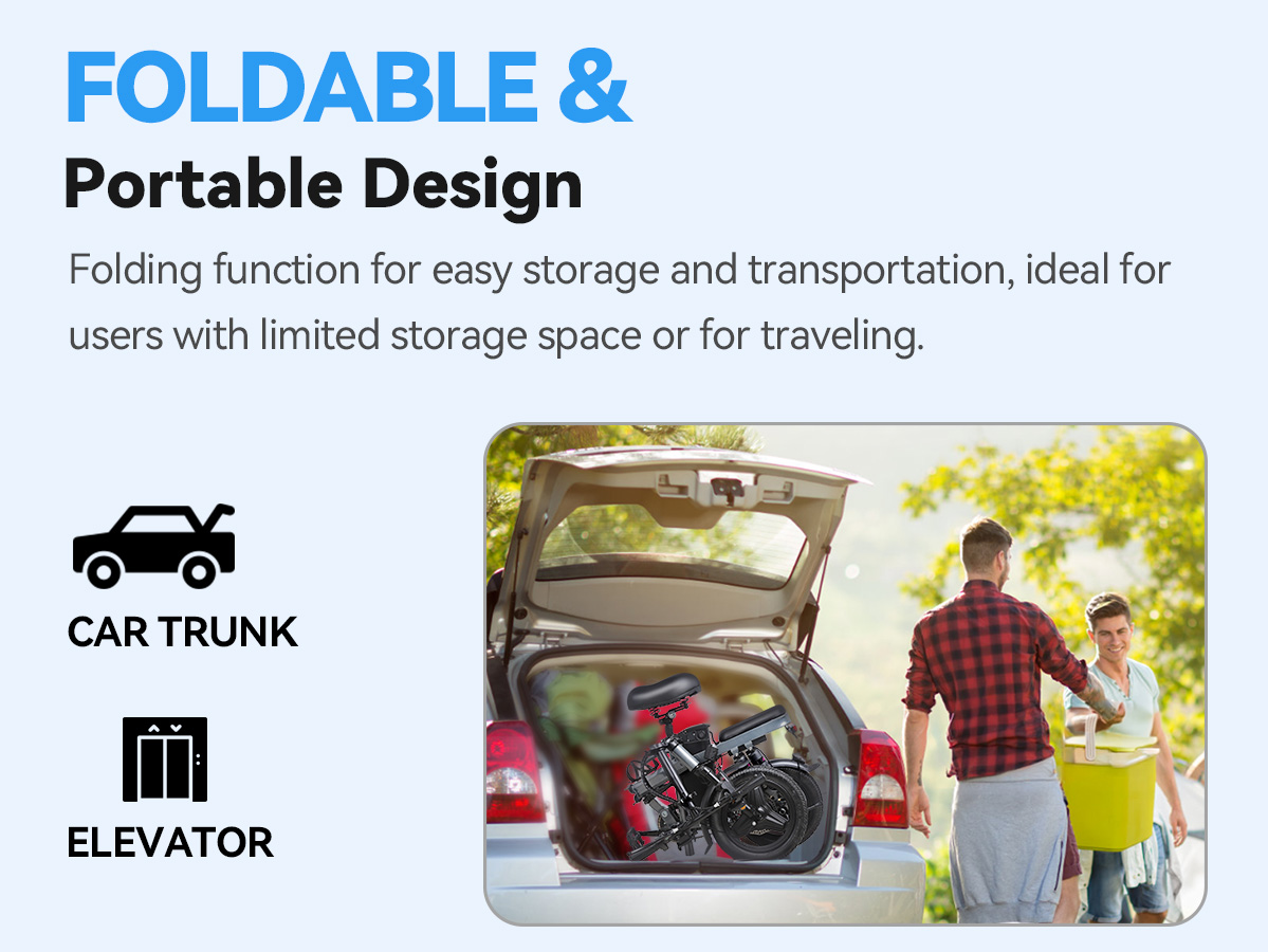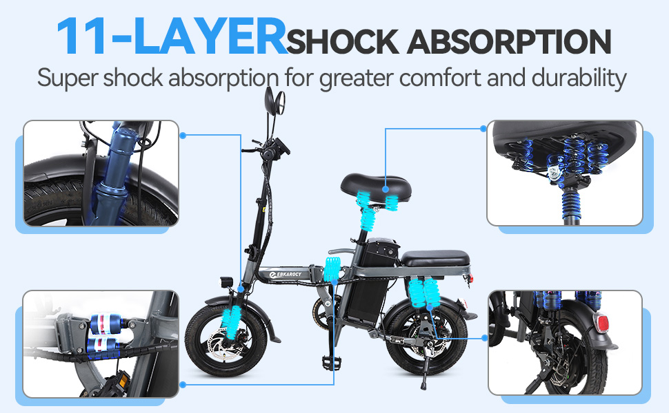 EBKAROCY Electric Bike for Adults,48V 20Ah Lithium Battery 28-45 miles,14'' Adults Electric Bicycles with Multiple Shock Absorption, Lightweight E-Bike