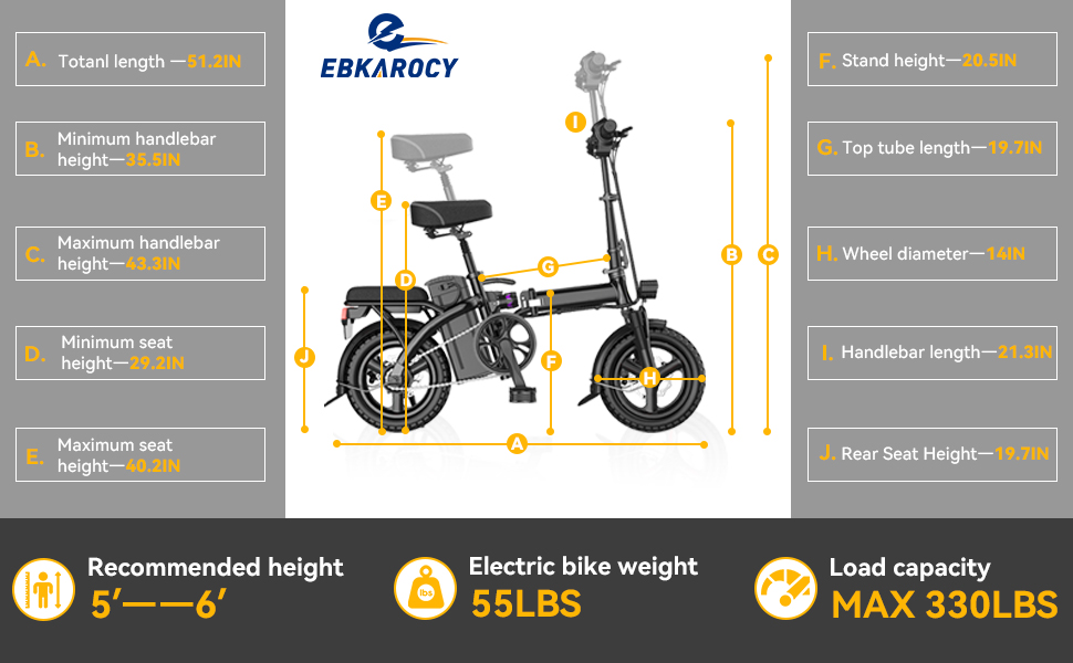 EBKAROCY Ebikes for Adults, 400W Motor 22MPH Max Speed, 14” Tire, 48V 15AH Removable Battery