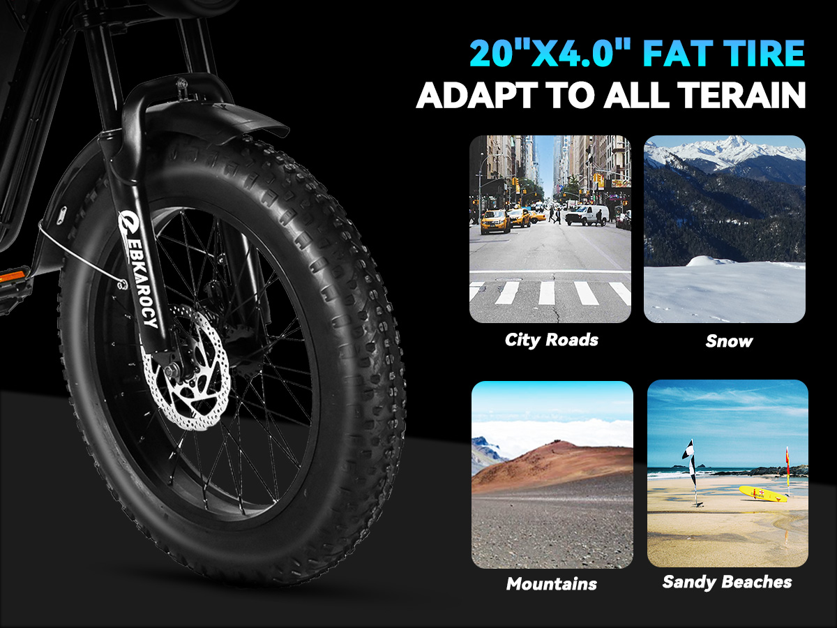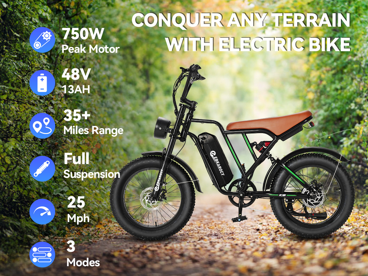 EBKAROCY Ebikes for Adults,750W Peak Motor, 65+ Miles Long Range,Full Suspension,7-Speed All-Terrain 20" Fat Tire Electric Motorcycle Dirt Bike,48V 13Ah Lithium Battery